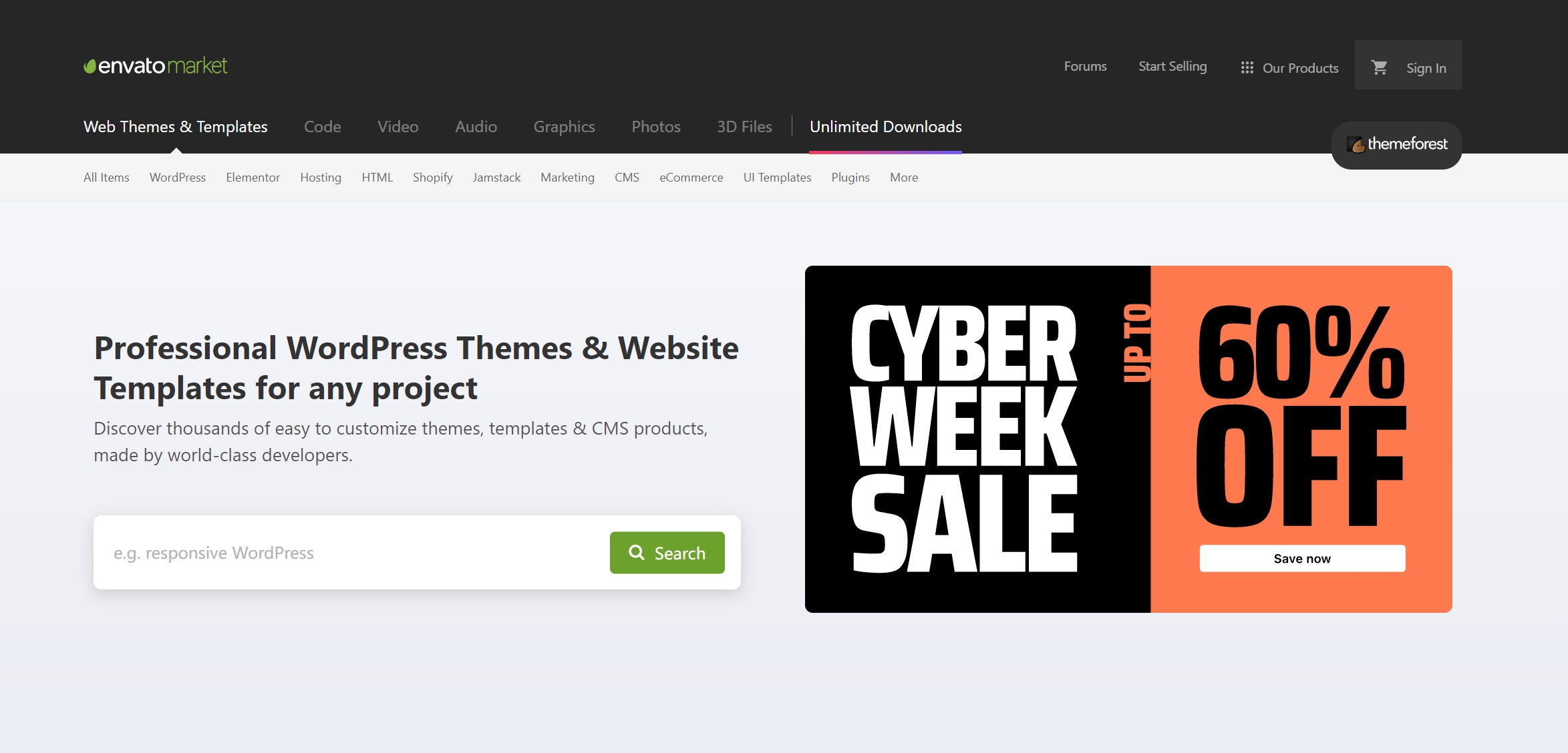 官方网站:https://themeforest.net/ ,主要为wordpress主题/插件、HTML网页、CMS、电子商务等,按个计费。