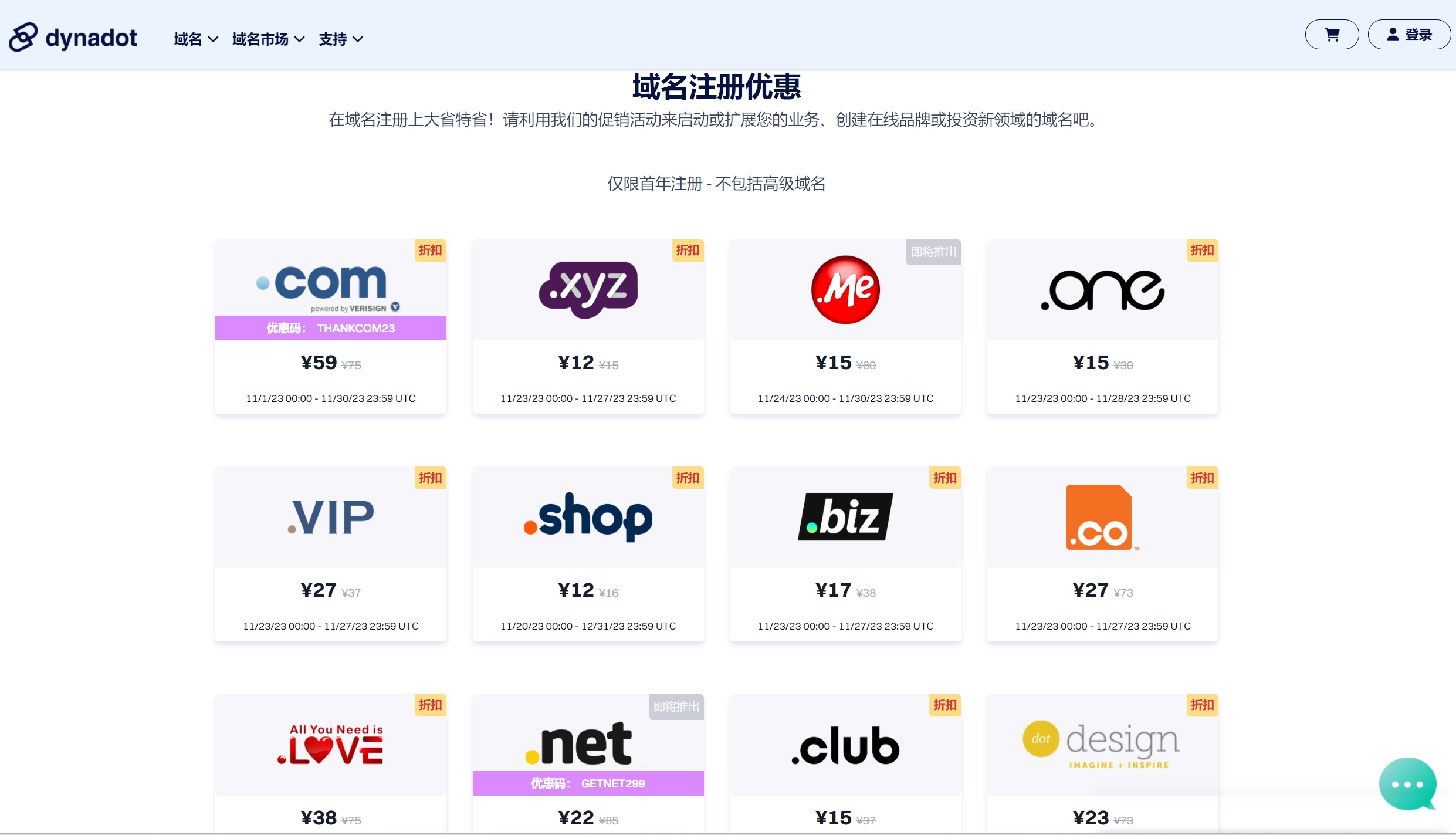 2023年的黑色星期五即将临近,今天是感恩节,但是大部分云服务商都有发布主机的活动。相对域名服务商的活动比较少的。如果不出意外Namecheap服务商明天才会发布活动。今天看到 Dynadot服务商发布新注册和转入域名活动,如果我们有需要新注册域名或者有在其他域名平台续费贵的可以转入进来。